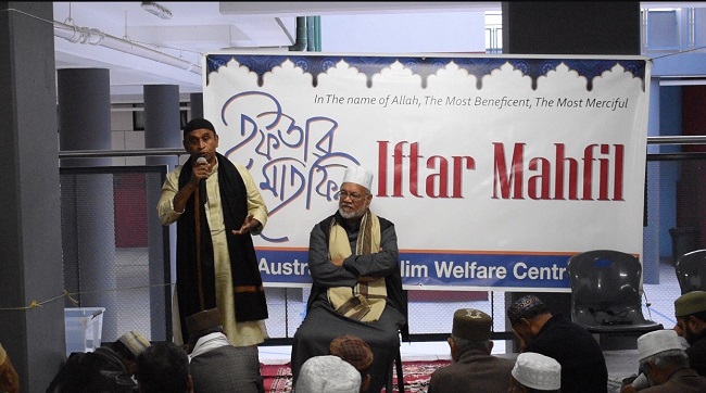 সেন্টারের সভাপতি গোলাম কিবরিয়ার সভাপতিত্বে খতিব হাফেজ শেখ আবুবকর আবদুর আউফ পবিত্র রমজানের তাৎপর্য তুলে ধরে বক্তব্য রাখেন এবং সকল মুসলিম উম্মার কল্যান কামনা করে বিশেষ দো’য়া করেন।অস্ট্রেলিয়ান মুসলিম ওয়েলফেয়ার সেন্টারের সাধারণ সম্পাদক ডঃ আনিসুল আফসার ইফতার অনুষ্ঠানে সিটি কাউন্সিল থেকে সদ্য অনুমোদন প্রাপ্ত কমিউনিটি সেন্টারের অনুমোদনের কথা জানিয়ে উপস্থিত মুসল্লিদের সার্বিক সহযোগিতা কামনা করেন।ইফতার অনুষ্ঠানে স্টেট এমপি অনুলাক চানটিভং, ক্যাম্বেলটাউন সিটি কাউন্সিলের মেয়র জর্জ ব্রাইসেভিসের পক্ষে কাউন্সিলর মাসুদ চৌধুরী শুভেচ্ছা বক্তব্য রাখেন। সিডনির দূর দুরান্ত থেকে আসা বহু গনমান্য ব্যক্তিবর্গ উপস্থিত ছিলেন।
